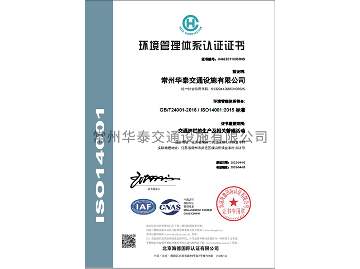 環(huán)境管理體系認(rèn)證證書